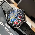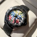 New Formula 1 Special Edition, Quartz! The dial features a portrait of Monopi, a small banker with a red scarf covering his face, a prominent watch in his hand, and an exaggerated expression. It has a diameter of approximately 41mm, and the rotating bezel is set with highly three-dimensional white numerals, showcasing your unique style anytime, anywhere! Comes with full packaging!