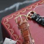 - A representative work of the Tank watch family! Inspired by the tank design of that time, it has been popular and sought-after since its release, a true classic that never goes out of style. The gold color paired with brown and black straps is also exceptional. The case and buckle are thickly plated with 18K gold in a vacuum furnace, ensuring it will not fade! Matched with a certificate from the authoritative Chinese GTC testing institution, each watch has a unique code and certificate, supporting re-inspection! Crafted entirely from precious metals, the gold-plated case has more rounded and delicate lines. The exposed screw design on both sides of the watch is also unique. The case back is also different from the past, with two rows of screws totaling 8, giving it a more retro and textured feel! The movement is equipped with a Swiss original quartz movement, with accurate timekeeping and zero error. Features a slightly conical sapphire crystal on the crown, and a large size with a date display! The specially crafted diamond-shaped glass adds a sense of depth. The dial features Roman numeral hour markers, with an inner track for indicating the exact time. The hands are made of blued steel, and the round crown is set with a blue synthetic conical jewel. The strap is made of imported leather and imported calfskin. Both are carefully selected leathers with colors and textures identical to the original. The watch is water-resistant to 30 meters. Returns and exchanges are supported if you are not satisfied. It comes with full packaging. (