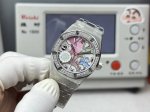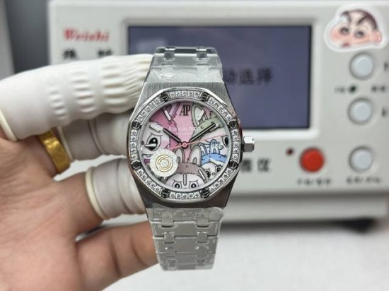 Omf New Product, Hot Selling Ap Pop Mart Collaboration "Labubu" Limited Edition of 100 Pieces, First Come First Served . The dial features a multi-colored oil-painted surface with enamel for enhanced shine . Look for Omf for a free Labubu keychain. Royal Oak Series Women's Watch, 34mm diameter, 9mm thickness. Features: 1. Stainless steel case with anti-reflective high-transparency sapphire crystal glass on the front and back. All data is scanned and polished. 2. Powered by a modified 9015 Calibre 5800 automatic movement with a rose gold rotor specially designed for this model. Stable timekeeping. 3. The steel bracelet is meticulously crafted with a perfect fit and ergonomically designed head links. 4. The dial features clear grid details and luminous three-dimensional hands filled with imported luminous material for longer-lasting illumination. A perfect size for an elegant fit on your wrist. A masterpiece of craftsmanship.