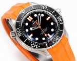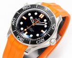 Or factory's only brand new Seamaster series beige diver's watch with orange hands, made entirely from the original mold. The mesh strap, rubber strap, and folding clasp are all newly molded and identical to the latest designs from the official boutique. It took three and a half years of research and development to create a genuine 8806 integrated movement. The DDD 1 movement has the same 55-hour power reserve as the original, a 42mm stainless steel case, and Super-Luminova luminous coating on the dial and skeletonized hands. The bezel and dial are made of anodized aluminum. The DDD 2 movement features the only identical 7 ceramic beads to the original automatic rotor, resulting in high cost, durability, and a winding feel indistinguishable from the original. The movement's beauty is clearly visible. The 8806 movement can be admired through the sapphire crystal case back with its wave-edged design. The DDD 3 movement has most components interchangeable with the original, and the movement features the same fish-scale pattern as the original, ensuring stable timekeeping. Truly achieving near-perfect imitation.