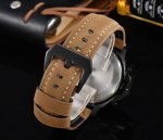 Panerai, a brand that embodies high-end quality. Features a 6-hand display, quartz crystal for running seconds, dedicated high-luminescence, and 30-meter water resistance. Panerai boasts over 150 years of brand history. As a supplier of precision instruments to the Italian Navy since the 20th century, it has maintained an inseparable connection with the sea, a tradition that imbues each timepiece with a sporty character. Approximate size: 45mm.