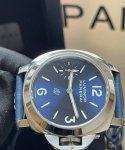 Panerai Luminor series manual mechanical movement small seconds hand, luminous, compact men's watch, Swiss watch 44Mm, blue dial, stainless steel case, calfskin strap Pam01085