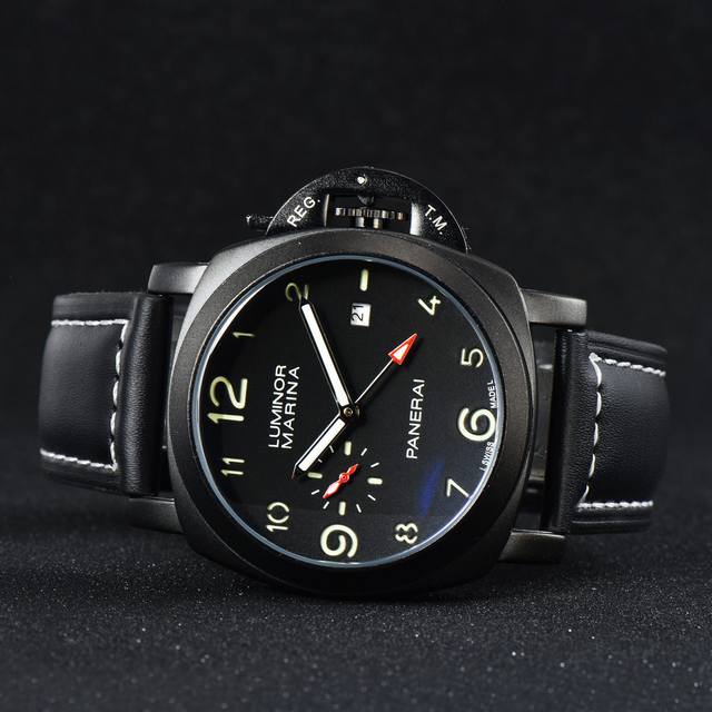 DDD Panerai Men's Watch with Super Luminous Luminous Light Type: 2-Hand Single Crown Series Elegant and Powerful Men's Watch with Comfortable and Breathable Leather Strap. Movement: Imported Quartz Movement Crystal: Blue Light Mineral Crystal Glass. Size: 44mm Diameter. Triple Water Resistance, a Top Choice for Men. Feel free to share. DDD