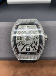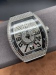 Perfect Details Abf Top Quality New Arrival Franck Muller FM Vanguard Yachting V45 Series 44X54 Mm 1. The case is 100% original molded, especially the sandwich structure, the blue side groove on the inner side of the case and the blue lugs protruding at the crown position, which makes the case production process more difficult. After more than 10 months and multiple initial proofs, the development and production were finally successful. It is made entirely of 316 stainless steel, not the low-cost plastic molds used in the market. 2. This version of the V45 blue yacht dial uses genuine Franc numerals with a 1:1 height of the original numerals with concave edges and inner Franc numerals. The cost is high, the production is complex, and the yield rate is low. The lower layer of the dial has a magnifying glass pad layer, and the date window also uses a sapphire magnifying glass. Always maintaining the requirement of being interchangeable with the original, we strive for excellence. 3. It uses an ultra-large curvature ultra-high-definition light-transmitting sapphire crystal glass made from a single piece of 40*50 mm 1. Sapphire crystal over 15mm thick is meticulously polished to perfectly match the case curvature, resulting in a high scrap rate and extremely low yield. 2. The diamond-set buckle uses the original mold and is identical to the original V45 full-star diamond-set pin buckle, making it more convenient to wear and maximizing the reproduction of the original. The plain case version uses a folding push-button clasp, matching the original. 3. The bent hands fit snugly against the dial, paired with the high-frequency 28800 Eta2824 movement for accurate and stable timekeeping. The curved case design fits snugly against the wrist. 4. The upgraded steel-tipped calendar watch features a softer and more comfortable premium rubber strap. This is the only version on the market that can be used with the original watch strap. The V45 Blue Yachting welcomes your appreciation.