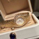 Piaget Limelight Gala Precious Watch DDD 26mm diameter, set with diamonds, dazzlingly brilliant. The engraved bracelet and dial reflect Piaget's passion for craftsmanship and art. DDD The iconic Decor Palace motif adds a unique charm to this ladies' watch. The automatic winding design showcases the brand's expertise. DDD The slender, diamond-set lugs, paired with a mother-of-pearl dial, exude captivating brilliance, while the 18K rose gold bracelet adds a touch of luxury. DDD The streamlined, asymmetrical lugs are the Gala's signature feature, instantly recognizable. Moreover, it's a watch designed specifically for women, not a scaled-down, unisex version of any men's watch. The beauty of the Gala may truly require time and experience. DDD