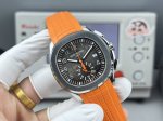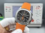 presents its latest masterpiece, the Patek Philippe 5968 42.2X12.5Mm series, a version that has been under development for a long time and is currently in high demand in the market. It comes in four versions: 5968G-001 with a blue dial, 010 with a green dial and white gold, featuring a bright white case and clasp that is more eye-catching than stainless steel; 5968R-001 with a rose gold and brown dial; and 5968A-001 with a stainless steel and black dial. This is also the most popular orange-hand version. As a thank you to new and old customers, this model comes with a free orange rubber strap (DDD .