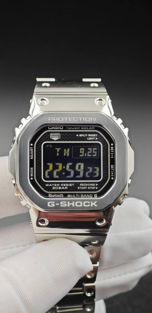 Real shipping photos, finally shipped! The silver Gmw-B5000D-1Jfb5000 35th Anniversary square steel watch features meticulous polishing and finishing, giving it a very high-end feel. The classic G-Shock case shape, now metal, exudes a futuristic and masculine vibe. Comes with full packaging.
