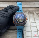 Richard Mille RM022 series automatic mechanical movement 40X50X16Mm, blue luminous crystal, unique skeletonized dial, luminous dial, hands, rubber or nylon strap, folding clasp. Conventional? Understated and unchanging? This has never been Richard Mille's worldview. DDD