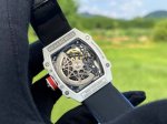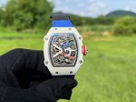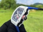 Richard Mille RM67-02 Men's Series Ultra-Thin Integrated Movement, Original Data 12 O'Clock Mainspring Wheel with Large Power Reserve, Original Rotor at 6 O'Clock Automatic Winding Watch, Tonneau Case Crafted from Richard Mille's Exclusive Tpt Carbon Fiber and Tpt Automatic Mechanical Composite Material, Maintaining Lightweight Characteristics While Offering Superior Shock Resistance, 38.70 x 48mm Case Diameter, Ultra-Thin 12.3mm Skeletonized Dial, Sapphire Crystal, Transparent Case Back. At the start of the 2017 London World Athletics Championships, Richard Mille created a bespoke RM 67-02 High Jump watch for his friend and undisputed high jump champion, Mutaz Essa Barshim. This timepiece is another testament to the brand's allure: superior, lighter, and more robust, making it another exceptional sports luxury watch. Light as a second skin, it bestows upon the wearer a unique sense of prestige and commemorative significance!