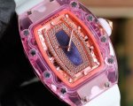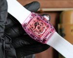 Richard Mille's latest offering, the Ladies RM07-02 Pink Lady Sapphire, combines a feminine look with advanced technology. It requires nearly 40 days of processing and finishing to meet Richard Mille's high-quality specifications, followed by extensive testing to verify that the brand's requirements for resistance and comfort are met! The Richard Mille RM07-02, a timepiece coveted by ladies, is also known as the "Diamond Crown ." Richard Mille relentlessly pursues technical perfection with the RM 007, designed specifically for women who appreciate the originality and bold technical prowess of high-end watches. The captivating yet understated diamonds on the dial and the softened bezel, combined with artistic prowess, make the Richard Mille RM 007 "Diamond Crusher" a pinnacle of haute horlogerie. Featuring an imported mechanical movement, its tonneau shape is reminiscent of Richard Mille's men's collections, but it has been adapted to a smaller, more feminine design. Due to its curved form, it fits even the smallest wrists. This 45mm x 31mm watch is one of the few modern timepieces to embrace the trend of larger watches and suits any woman's wrist. The openworked dial also makes it appear lighter on the wrist!