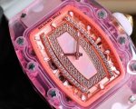 Richard Mille's latest offering, the Ladies RM07-02 Pink Lady Sapphire, combines a feminine aesthetic with advanced technology. It requires nearly 40 days of processing and finishing to meet Richard Mille 's high-quality specifications, followed by extensive testing to verify that the brand's requirements for resistance and comfort are met! The Richard Mille RM07-02, a timepiece coveted by ladies, is also known as the "Diamond Crown." Richard Mille relentlessly pursues technical perfection with the RM 007, designed specifically for women who appreciate the originality and technical boldness of high-end watches. The captivating yet understated diamonds on the dial and the softened bezel, combined with artistic prowess, make the Richard Mille RM 007 "Diamond Crusher" a pinnacle of haute horlogerie. Featuring an imported mechanical movement, its tonneau shape is reminiscent of Richard Mille's men's collection, but it has been adapted to a smaller, more feminine design. Due to its curved form, it fits even the smallest wrists. This 45mm x 31mm watch is one of the few modern timepieces to embrace the trend of larger watches and suits any woman's wrist. The openworked dial also makes it appear lighter on the wrist.