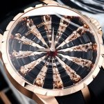 Roger Dubuis Excalibur Knights of the Round Table watch, 45mm x 15.7mm. Breaking through all previous versions on the market, correcting shortcomings, striving for perfection, meticulously paying homage to the original! Technical breakthroughs: 1. The 12 bronze figures, of considerable value, are all micro-carved using the same bronze material as the genuine article. Hand micro-carving is time-consuming and labor-intensive, but it yields outstanding results. Each knight is only 6.5mm tall, yet lifelike. 2. The entire case is rounded and comfortable to hold. While seemingly clumsy, it embodies countless hours of meticulous work. The triangular grooves on the bezel require extensive CNC processing, then are meticulously refined by experienced watchmakers. 3. The hemispherical domed sapphire crystal allows for viewing and appreciation of the exquisite details of the 12 bronze figures from any angle. The movement uses a precise and stable Zhengmingzhu mechanical movement! The strap buckle is identical to the original, and the connection between the strap and the watch head is filled with military-grade rubber. To achieve the same effect as the genuine product, we continuously test to ensure compatibility with the watch strap and case! The transitions are smooth and fluid, ensuring not only comfort for the wearer but also a harmonious and aesthetically pleasing overall look!