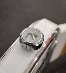 C 01 features a white matte watch bezel, crafted from durable Corian material with a solid inner surface, and comes with a white leather strap, highlighting its independent character.