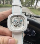 Sevenfriday (Seven Fridays) P-series automatic mechanical movement, industrial style, trendy sporty casual, unisex Swiss watch, 47.6*47mm, white dial, ceramic, stainless steel case, leather strap.