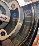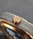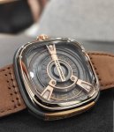 SevenFridays Rose Gold DDD M2 02 is inspired by brass tubing, a typical mechanical component during the Industrial Revolution . The M2 02 features a stainless steel case with a rose gold PVD finish and a polished rose gold PVD nameplate, while the dark grey mirror-finished PVD bezel has rose gold highlights. Its stainless steel animating ring is sandblasted dark grey PVD-finished, while the interface consists of seven layers of dark grey and rose gold, alternating with cast iron textured patterns, opal, matte, and satin finishes. Three custom discs indicate the hours, minutes, and seconds, allowing the time to be read from right to left.