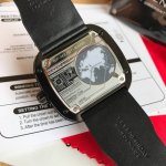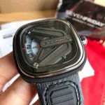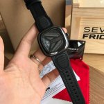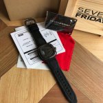 Sevenfriday's Spaceship Inspiration Automatic Mechanical Watch M301 boasts a futuristic spaceship-inspired design with a sandblasted black Y-shaped wing design resembling landing gear dynamic rings. The leather strap features a multi-layered, three-dimensional interface with a retro industrial feel. The dial utilizes 11 components and 7 layers, creating a multi-layered, three-dimensional effect. A silicone dynamic ring surrounds the case, and the black Y-shaped display shows three overlapping time discs: an hour disc on the left, a minute disc on the right, and a seconds disc in the center! DDD