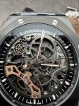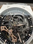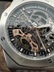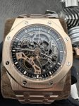 's new Audemars Piguet upgraded skeletonized Royal Oak Offshore 15407St.Oo.1220St.01 men's mechanical watch is a perfect fusion of classic design and craftsmanship. Powered by the Calibre 3132 integrated movement, its 41mm diameter and 9.9mm thickness are perfectly proportioned, fitting comfortably on the wrist. The deep gray skeletonized dial is highly recognizable, and the hexagonal screws on the octagonal bezel carry half a century of brand legend, remaining a favorite among established watch enthusiasts. The three-sided brushed luminescent hands combine sophistication with excellent readability. The
