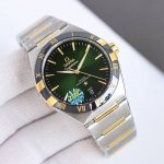 The Constellation 5th Generation Platinum Starlight Eternal Constellation Watch! Brand new original size 41mm watch! Features include : 1. Upgraded bezel: A polished imported ceramic bezel and a sandblasted gold bezel, identical to the original; the markers are white gold plated for long-lasting color retention. 2. Half-moon shaped facets: Adjusted claw details are more delicate; the case and claws are polished and chamfered for a more natural integration, making the watch more refined. 3. Crown engraved with the logo: Polishing and brushing effects are identical to the original. 4. Dial color adjusted by engineers: The meteorite effect is more sophisticated, with a younger and more fashionable style. A large trapezoidal date window at 6 o'clock, identical to the original, distinguishes it from the obviously fake small date windows on the market. 5. Hands: Original molded, filled with luminous material; the polishing and brushing of the hand tips, achieving the same beveled effect as the original, took half a year. The arduous process is designed to give customers the same feeling as the original. 6. Equipped with the original 89008901 black oiled coaxial master chronometer integrated movement, featuring a scratch-resistant sapphire crystal on both the front and back, allowing for a clear view of the dial and the movement's operation. The double-T black balance wheel is identical to the original. 7. The movement and clasp on the back are engraved with the same serial number, identical to the serial number on the warranty card and hangtag with a sticker on the back cover. Each watch has a unique serial number, with all five serial numbers matching. 8. The back glass is wider, identical to the original, distinguishing it from the easily identifiable fakes on the market with smaller glass.