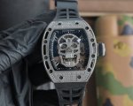 The latest upgraded version of the Richard Mille RM052 series skull watch features a polished stainless steel case and an original imported mechanical movement, further highlighting its sporty style. The floating skeletonized movement is visible through the anti-reflective crystal. Its bold and distinctive skull design is eye-catching and has successfully captured the hearts of many watch enthusiasts. The skull image creates a watchmaking world that is not bound by mainstream conventions.