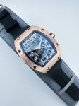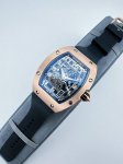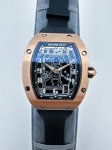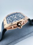 The Richard Mille RM67-01 features an automatic, ultra-thin watch with a refined tonneau-shaped case measuring 38-48 mm and 11 mm thick. It boasts a classic design while maintaining a slim profile. The solid metal numerals contrast beautifully with the exquisite skeletonized movement, creating a sense of depth and complexity. Slim, simple, and lightweight, yet profound and intricate, this watch is the perfect match for formal attire.