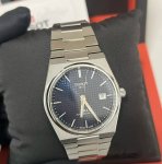 Tissot Prx Automatic Mechanical Watch, Water Resistant, Date Display, Men's Watch, Swiss Style, Blue Dial, Stainless Steel Case, Stainless Steel Strap.