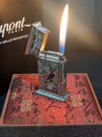 Today I'm recommending a limited edition Dupont refillable lighter, the Pharaoh, themed around ancient Egyptian civilization. It depicts symbols such as the crowned eagle of Horus, the Pharaoh's guardian god, and Isis, the goddess of life. This is a pinnacle of luxury lighter limited editions and one of Dupont's most popular limited editions. Only 2575 of these lighters were produced. The design is inspired by ancient Egyptian civilization, featuring a rich blend of ancient Egyptian and exotic styles. The main colors are Chinese lacquer red and black, accented with malachite, paying homage to Egypt, a civilization rich in legends, gods, and symbols. Whether placed at home or in the office, it's a delightful decoration that instantly elevates your style.