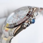 Top-tier version Cosmograph Daytona 1 8 watch! A 1:1 replica from the original, this 40mm diameter watch uses the 7750 movement, a stable chronograph movement, and its thickness is identical to the original, achieving a perfect top-tier replica! The case is made of 904L stainless steel with 2N18 gold plating, resulting in a more prominent color and brighter luster, closer to 18K gold! The crown features a screw-down Triplock triple waterproof system for enhanced water resistance! It also boasts a high-brightness sapphire crystal, an original invisible crown, an Oyster safety clasp with a 5mm Easylink extension system