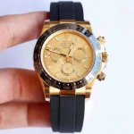Top-tier version Cosmograph Daytona 1 8 watch! DDD original mold, 40mm diameter, using the 4130 movement, a stable chronograph movement, with the same thickness as the original, achieving perfect top-tier quality!! DDD Furthermore, the case is made of 904L stainless steel with 2N18 gold plating, resulting in a more prominent color and brighter luster, closer to 18K gold! The crown features a screw-down Triplock triple waterproof system for enhanced water resistance!! It also features a high-brightness sapphire crystal, original invisible crown, Oyster safety clasp with a 5mm Easylink extension system, the latest marvel! DDD Always imitated, never surpassed; only by constantly breaking through its own limits can it lead the way!! DDD