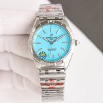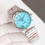 Unified Price: Breitling's newest model, the A10380101L1A1 series, has reached new heights. The new Breitling mechanical chronograph watch - South Seas Capsule series - features the Chronometer Automatic 36mm special edition. The first model boasts striking colors and luminescence, evoking the captivating atmosphere of summer marine life and lush greenery. The second model combines elegance and sportiness, suitable for any occasion, from business meetings to the beach, and anywhere in between. The third model has a 36mm diameter and a dial available in a variety of vibrant colors, offering a soft yet energetic look. A practical date window is located at 6 o'clock. The fourth model is equipped with an imported 2824 mechanical movement. The fifth model is a top-tier replica, 36mm in size and 10mm in thickness. The thinnest version, a 1:1 mold, most similar to the official website. The