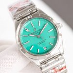 Unified Price: Breitling's newest model, the A10380101L1A1 series, has reached new heights. The new Breitling mechanical chronograph watch - South Seas Capsule series - features the Chronometer Automatic 36mm special edition. The first model boasts striking colors and luminescence, evoking the captivating atmosphere of summer marine life and lush greenery. The second model combines elegance and sportiness, suitable for any occasion, from business meetings to the beach, and anywhere in between. The third model has a 36mm diameter and a dial available in a variety of vibrant colors, offering a soft yet energetic look. A practical date window is located at 6 o'clock. The fourth model is equipped with an imported 2824 mechanical movement. The fifth model is a top-tier replica, 36mm in size and 10mm in thickness. The thinnest version, a 1:1 mold, most similar to the official website. The