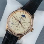 V9 Jaeger-LeCoultre Master Perpetual Calendar Rose Gold Diamond Leather Classic Moon Phase DDD
