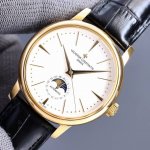 Vacheron Constantin Patrimony men's watch! A brand new complicated multi-functional watch with moon and sun phase display, featuring super luminous lume. Powered by an original imported 2824-2 automatic mechanical movement, it combines month display, moon and sun phase display, and other functions into one perfect timepiece. Adhering to Swiss watchmaking craftsmanship, it features a full steel case plated with nano-plated platinum, PVD in-furnace plating, a French sapphire crystal scratch-resistant glass, and imported Italian calfskin leather with an original buckle, creating a top-tier, perfect product. Dimensions: 40*10mm.