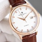 Vacheron Constantin Patrimony Platinum Watch is now available! Simple yet elegant, a perfect blend of style and sophistication, allowing you to exude refined gentlemanly charm! This watch features the original imported 9015 ultra-thin movement, oscillating at 28,800 vibrations per hour, ensuring stable performance and zero returns! Case: Made of 316L stainless steel with a sapphire crystal! Paired with an Italian genuine leather strap! Diameter: 40mm, highly water-resistant, simple and elegant, high-end quality, suitable for various business occasions, and a top choice for gifts! DDD