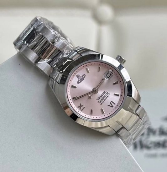 Vivienne Westwood Queen Elizabeth II Pink Dial Silver Steel Strap DDD
