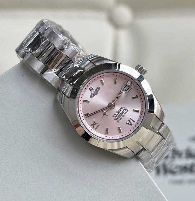 / Vivienne Westwood Queen Elizabeth II Pink Dial Silver Steel Strap DDD