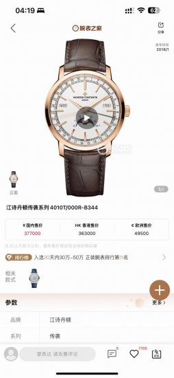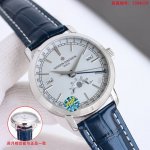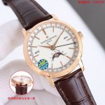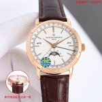 Dial: Railway-style minute track and dauphine hour and minute hands, retaining Vacheron Constantin's signature calendar display. The day and month windows are symmetrically distributed on both sides of the dial, with the date display on the outer numeral bezel, gently supported by an elegant black crescent hand for easy reading. A clever design breaks the monotony of the dial; this layout clearly showcases the precise moon phase display at 6 o'clock. While highlighting its dynamic charm, it also exudes the unique beauty of complex mechanics.