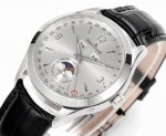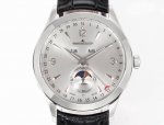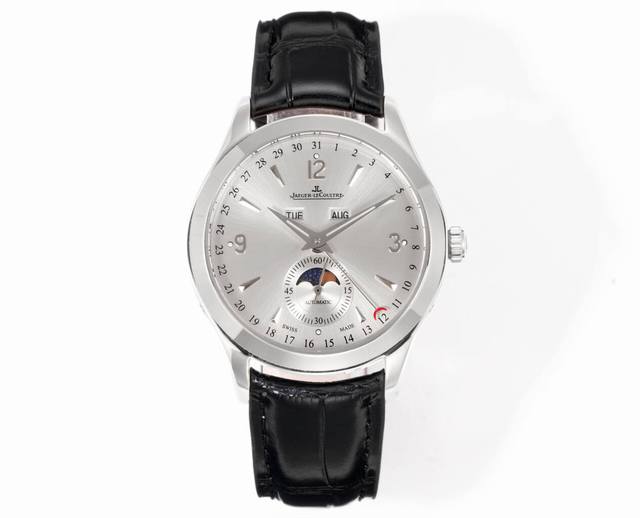 5C Factory With heartfelt sincerity, we proudly present the Jaeger-LeCoultre Master Collection 1558420, a masterpiece of exquisite aesthetics. The highest-quality version on the market features a genuine small seconds hand at 6 o'clock. Exquisite details: Watch size 39mm x 12mm, thin yet sophisticated. 1. The dome-shaped dial has a slight curve when viewed from the side. Multiple modifications ensure its charm rivals the original, restoring the authentic watchmaking qualities and showcasing its timeless allure in a slightly different way! 2. The watch features two windows at 12 o'clock displaying the day of the week and month respectively. The sub-dial at 6 o'clock features a small seconds hand and a moon phase display, while the edge displays the date hand, restoring all functions. The