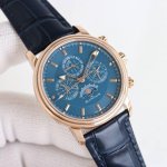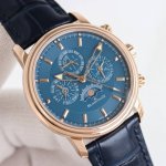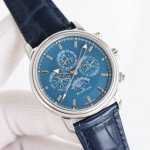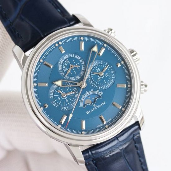 White Gold Blancpain 2685F-3630-53B Leader Series Watch. Movement Type: Automatic Mechanical. Size: 40mm. Black/Brown Leather Strap. Dial Available in Black, Blue, and White. Functions include Date, Day, Chronograph, Month, Leap Year, Annual Calendar, Perpetual Calendar, and Moon Phase. A multi-functional mechanical watch from the Leader series, a timepiece you deserve.