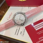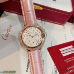 White Gold Diamond Ballon Bleu De Series Qixi Festival Special Edition. The dazzling dial features a combination of diamonds, pink sapphires, and shimmering embossing, offering a unique and exquisite interpretation of the brand's classic design. It boasts a Swiss quartz movement, 36mm in diameter, and a lovely pink bamboo calfskin leather strap. A truly beautiful watch!