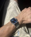 Wow, the Tissot looks even better in the luminous case! The Tissot PRX Super Player 1853 looks really cool on me! The square dial adds a lot of style to my outfit. #Men'sWatches #Tissot #TissotSuperPlayerPRX