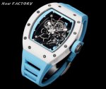 New Factory - New Factory's RM055 latest V5 upgrade. This integrated movement features the original dual-barrel movement, ensuring more consistent quality. The movement gemstones are not rhinestones or glued together, and are guaranteed to withstand the test pen. The "heart" is hand-set with imported white gemstones.