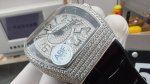 Perfect details, Abf, and the highest quality, the new Franck Muller Vanguard Yachting V45 series, 44x54 mm, has arrived. 1. The case is 100% original, featuring the sandwich construction. The blue side grooves on the inner center of the case and the protruding blue lugs on the crown further complicate the production process. After over 10 months and multiple initial revisions, the watch was finally successfully developed and manufactured. Made entirely of 316 stainless steel, rather than low-cost plastic molds, it's crafted from scratch. 2. This edition of the V45 Blue Yacht dial features genuine franc dies, with 1:1 ratios. The digits are concave, and the franc dies are expensive, complex, and have a low yield rate. The dial has a magnifying glass and gasket underneath, and the calendar window also uses a sapphire magnifying glass, ensuring compatibility with the original. 3. The watch features an ultra-curved, high-definition, and transparent sapphire crystal, constructed from a single 40x50 mm piece. The sapphire material, over 15mm thick, is 100% meticulously ground to the curvature of the case, resulting in a high scrap rate and extremely low yield rate. 4. The diamond-encrusted clasp uses the same diamond-encrusted pin buckle as the original V45 Gypsophila, making it more comfortable to wear and maximizing its authenticity. The plain case version uses a folding snap clasp, matching the original. 5. The bent hands align perfectly with the dial, paired with the high-frequency 28800 amplitude Eta 2824 movement for precise timekeeping and stable quality, and the curved case design fits snugly on the wrist. 6. The upgraded steel-tipped calendar and premium rubber strap are softer and more comfortable. This is the only strap on the market that can be used with the original V45 Blue Yacht. We welcome your appreciation.