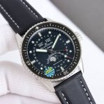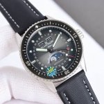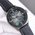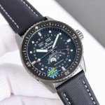 Blancpain Fifty Fathoms 43.6mm Men's Watch. High-tech satin-finished gray ceramic boasts a brilliant luster, high hardness, and is resistant to discoloration, staining, and wear. The case and bezel are aligned, creating a striking three-dimensional effect! The color will never fade, and the feel is smooth and gentle on the skin. The crown and handle are beautifully engraved, showcasing exceptional craftsmanship. The satin-finished ceramic buckle is meticulously polished inside and out, and the pin has been multi-faceted and chamfered, perfectly recreating the details of the original. The movement utilizes a precision Hangzhou 7-series movement modified from Blancpain's in-house 6654.p.4 caliber. The dial displays the day and month in a window at 12 o'clock, and the moon phases are displayed in a subdial at 6 o'clock, complete with Blancpain's signature elegant moon face. The plate jewels and bearings are the same color as the original, ensuring a truly pristine finish and a look that makes the plate look unmistakable. The integrated plate not only looks more like the original, but also better protects the movement and ensures more consistent quality! The plate is ground and then chamfered, meticulously crafted to prevent copper shavings from falling onto the movement and causing it to stall. The dial and calendar are perfectly sized and color-matched, and the 100% Swiss imported C3 luminescent material offers a brightness and durability comparable to the original! Waterproof and factory-tested for 100% three-degree water resistance.