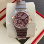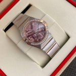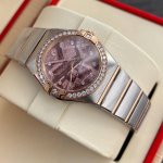Batch of genuine diamond watches. Omega. New Omega Constellation series diamond quartz women's watch, 27mm diameter dial, Swiss quartz movement, sapphire crystal scratch-resistant glass, outer dial set with 36 natural diamonds, each watch comes with a genuine diamond certificate (look for the national inspection certificate!). Inner dial set with 12 gemstones, 3D three-dimensional purple meteor dial craftsmanship! A timeless standard! The strap uses a waterless electroplating process, not easy to fade, and the strap end links are not the protruding versions on the market. The internal lettering of the strap is composed of 3 different sizes and styles, the font is clear and exquisite, not a single font that is connected in one piece on the market. The set genuine diamond hour markers are luxurious and elegant. The center pattern and stars on the case back are oil-pressed with delicate, full and clear texture, and most importantly, there are two levels of concave grooves for a strong three-dimensional effect! Free return and exchange if it does not affect resale! DDD