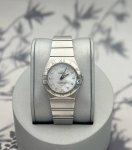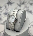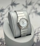 Classic and elegant Omega Constellation series DDD Omega Constellation series 123.10.27.60.55 1 Ladies' Quartz Watch, Case Diameter: 27mm, Wrist Circumference: 160mm. Silver-white mother-of-pearl dial set with 12 diamond hour markers, stainless steel bezel adorned with Roman numerals, domed scratch-resistant sapphire crystal with anti-reflective coating, stainless steel bracelet. DDD Retail Price: ?32,890, Accessories: Full set. DDD