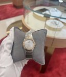 My darlings, today I'm sharing a stunning Omega Constellation watch with a silver dial in 18K yellow gold and gold. This watch features a 24mm silver dial, its surface shimmering like moonlight, gentle and pure. Paired with an 18K gold bezel, the interplay of gold and silver creates an elegant and sophisticated look. The bar-shaped hour markers are simple yet sophisticated, with every detail showcasing exquisite craftsmanship and quality.
