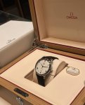 My first time buying a watch: Omega De Ville classic three-hand. If you're unsure what to buy for your first dress watch, I highly recommend a white three-hand De Ville III. The white dial is very versatile; it goes well with any color suit, especially in winter.
