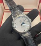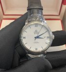 Omega 424.53.40.20.04 De Ville series men's automatic mechanical watch, 18K white gold, blue hands, ceramic and white dial, 39.5 mm diameter, date display, complete set, unused, recent card, in stock.