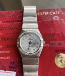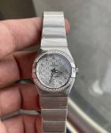 Omega Constellation 123.15.24.60.03 Ladies' Watch, Quartz Movement, 24mm Diameter, Stainless Steel, Blue Dial with Original Diamond Bezel, Watch Only, 95% New, Official Price 10, Available Now (Xxxx