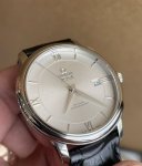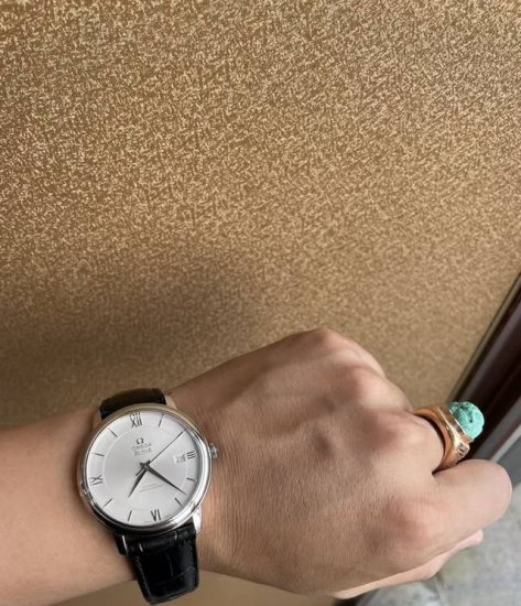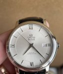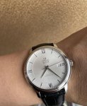 Omega De Ville Series 4 Automatic Stainless Steel Men's Watch, 39.5mm Oversized Dial, White Sunburst Dial, Classic Roman numerals, Sword-shaped Hands, Date Display, Sapphire Crystal, Powered by Omega Automatic Cal. 2500 Master Chronometer Certified Co-Axial Movement, Clearly Visible 86943587 Stamped on Case Back and Movement. Purchased on July 27, 2025. Box, Certificate, Card Holder, Dust Bag, and Handbag included. Nearly Brand New, Unused, Complete Set. Retail Price: 37050. In Stock, Enlarged Size, Bargain Price: 12850. DDD